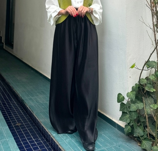 شلوار پلیسه مشکی و ابی کمر کش